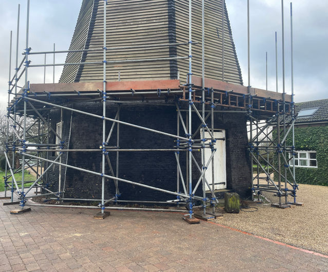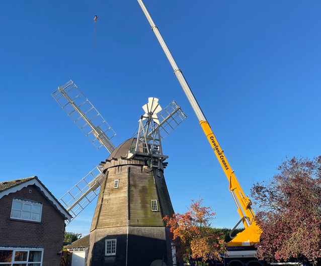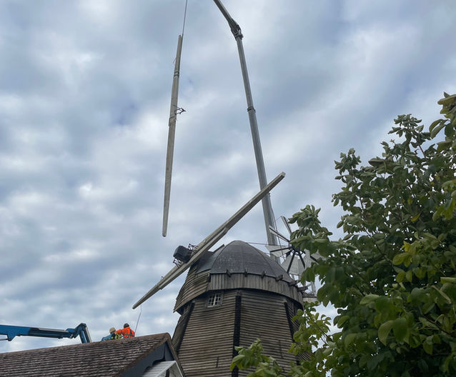 The actual restoration tasks started on the 4th November and then over several days the sails were removed, their supporting stocks dismantled and the cap taken off. A temporary protective cover was installed to replace the cap and protect the inside of the windmill from the weather. A full description of the process is outlined in the newsletter here.